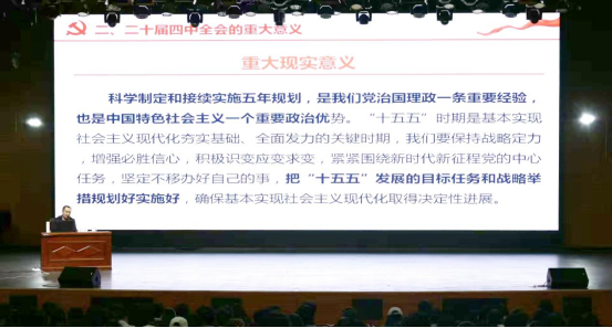 首先,刘祺教授阐述了党的二十届四中全会的背景意义和“十五五”规划的重要地位。随后他从党的二十届四中全会的目标原则和战略要点两大部分入手,通过阐述八个总体要求、六个坚持、七项奋斗目标、十二项战略任务的重要内涵,结合“十五五”时期的指导方针、指导原则、主要目标、科技水平发展、生产力发展、市场发展格局、市场经济体制、对外政策、农业农村发展、区域发展、民族文化发展、民生福祉建设、美丽中国建设、国家安全体系构建、国防和军队建设及鼓励全体人民团结实现“十五五”规划15个小点向学员们深刻阐述了国家“十五五”规划的核心要义。